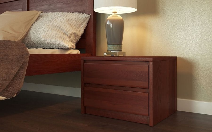 Загальний розмір. Залежить від величини спальні. Для кімнати більшої площі можна дозволити собі й меблі більшого розміру – і навпаки, невеличке приміщення вимагає наявності маленької тумби з функціональними ящиками.